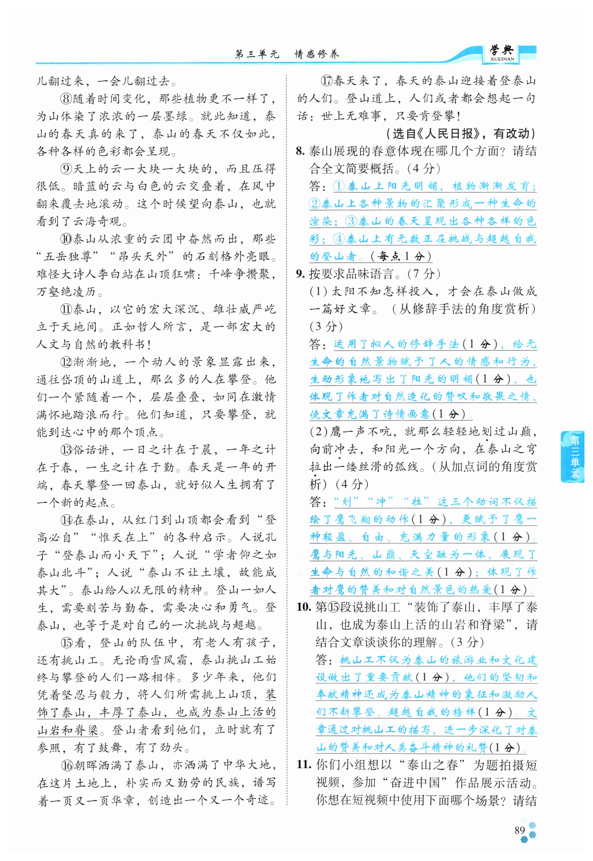注:目前有些书本章节名称可能整理的还不是很完善,但都是按照顺序排列的,请同学们按照顺序仔细查找。练习册 2025年学典四川八年级语文下册人教版B版 答案主要是用来给同学们做完题方便对答案用的,请勿直接抄袭。