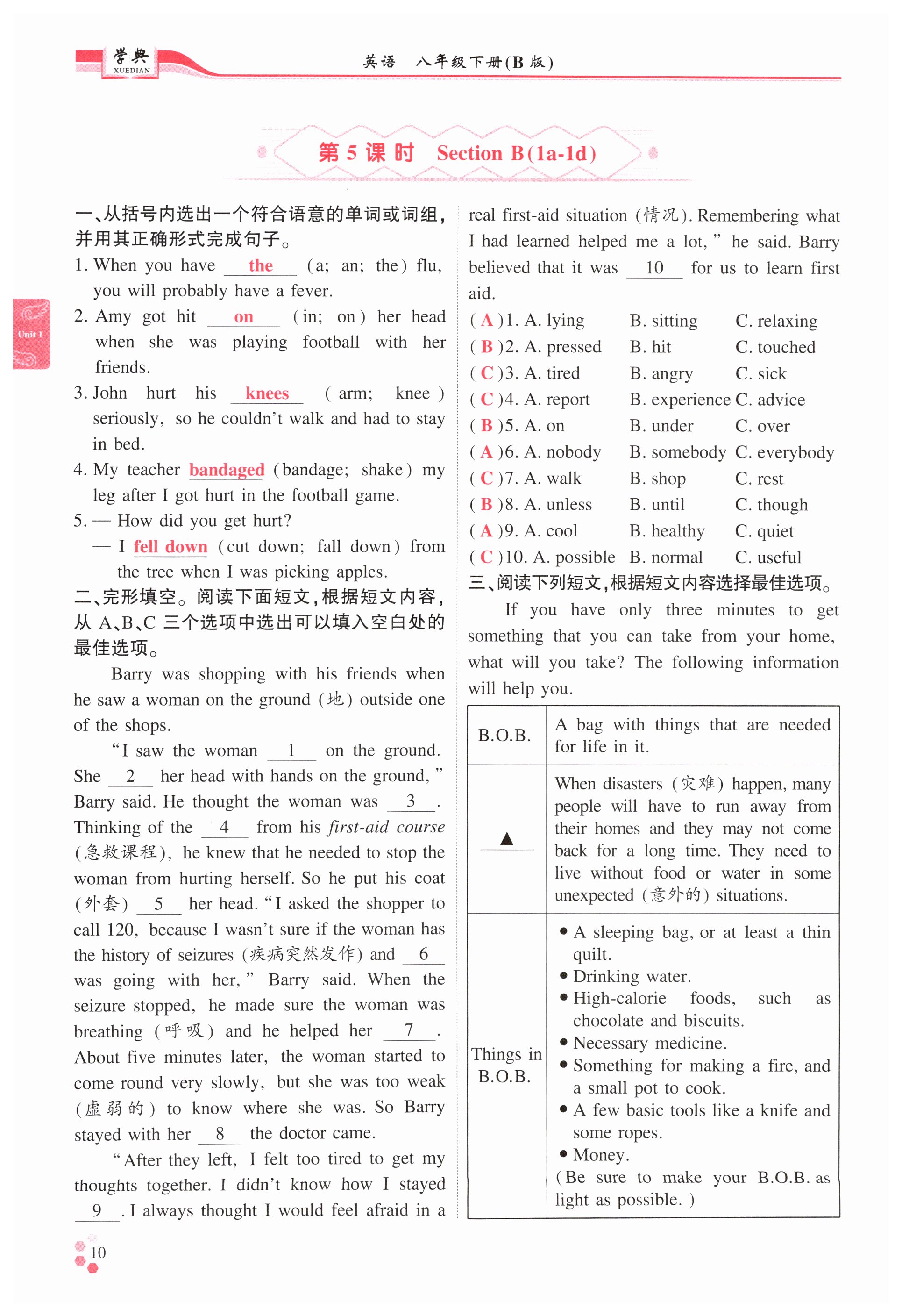 注:目前有些书本章节名称可能整理的还不是很完善,但都是按照顺序排列的,请同学们按照顺序仔细查找。练习册 2025年学典四川八年级英语下册人教版B版 答案主要是用来给同学们做完题方便对答案用的,请勿直接抄袭。