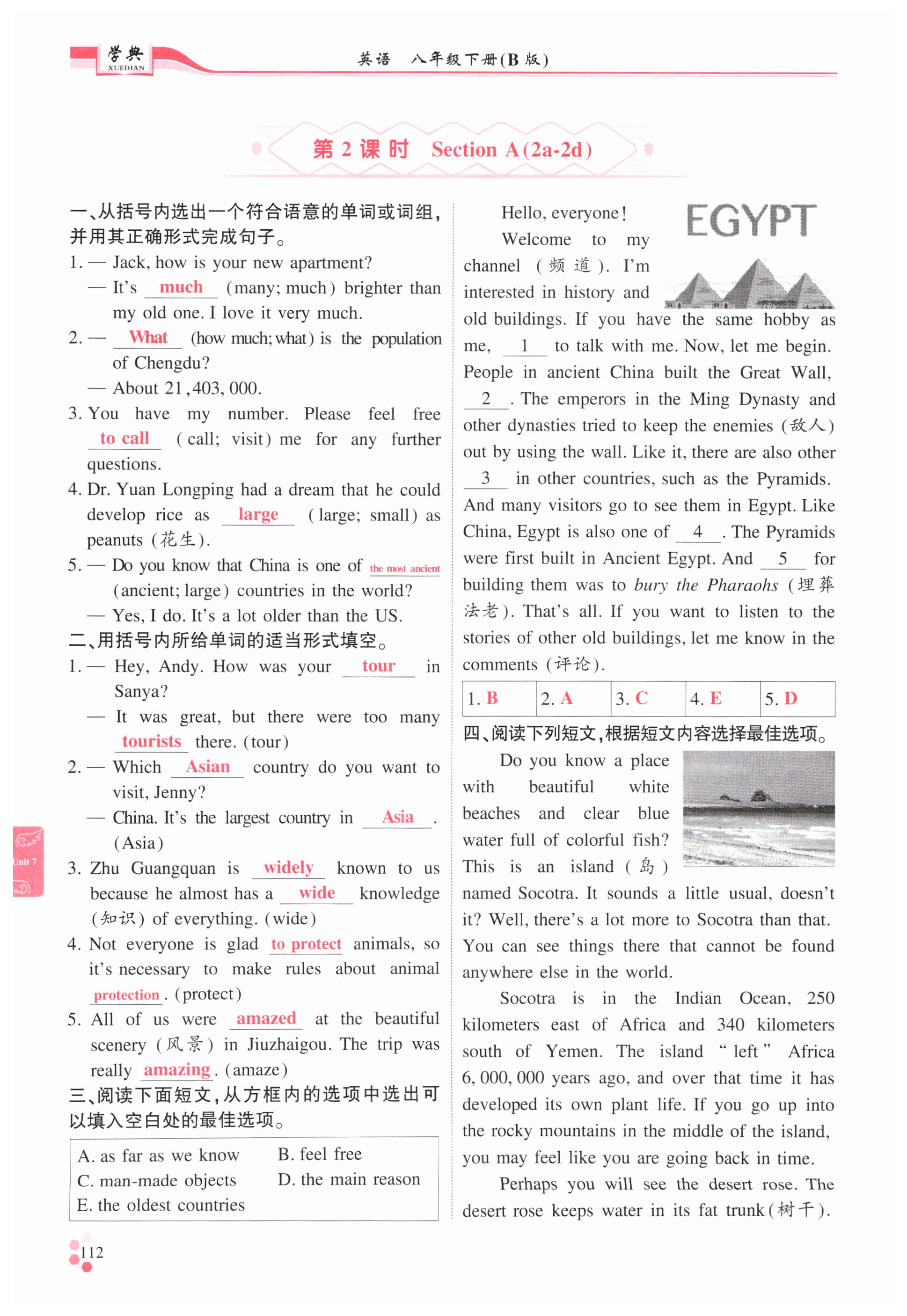 注:目前有些书本章节名称可能整理的还不是很完善,但都是按照顺序排列的,请同学们按照顺序仔细查找。练习册 2025年学典四川八年级英语下册人教版B版 答案主要是用来给同学们做完题方便对答案用的,请勿直接抄袭。