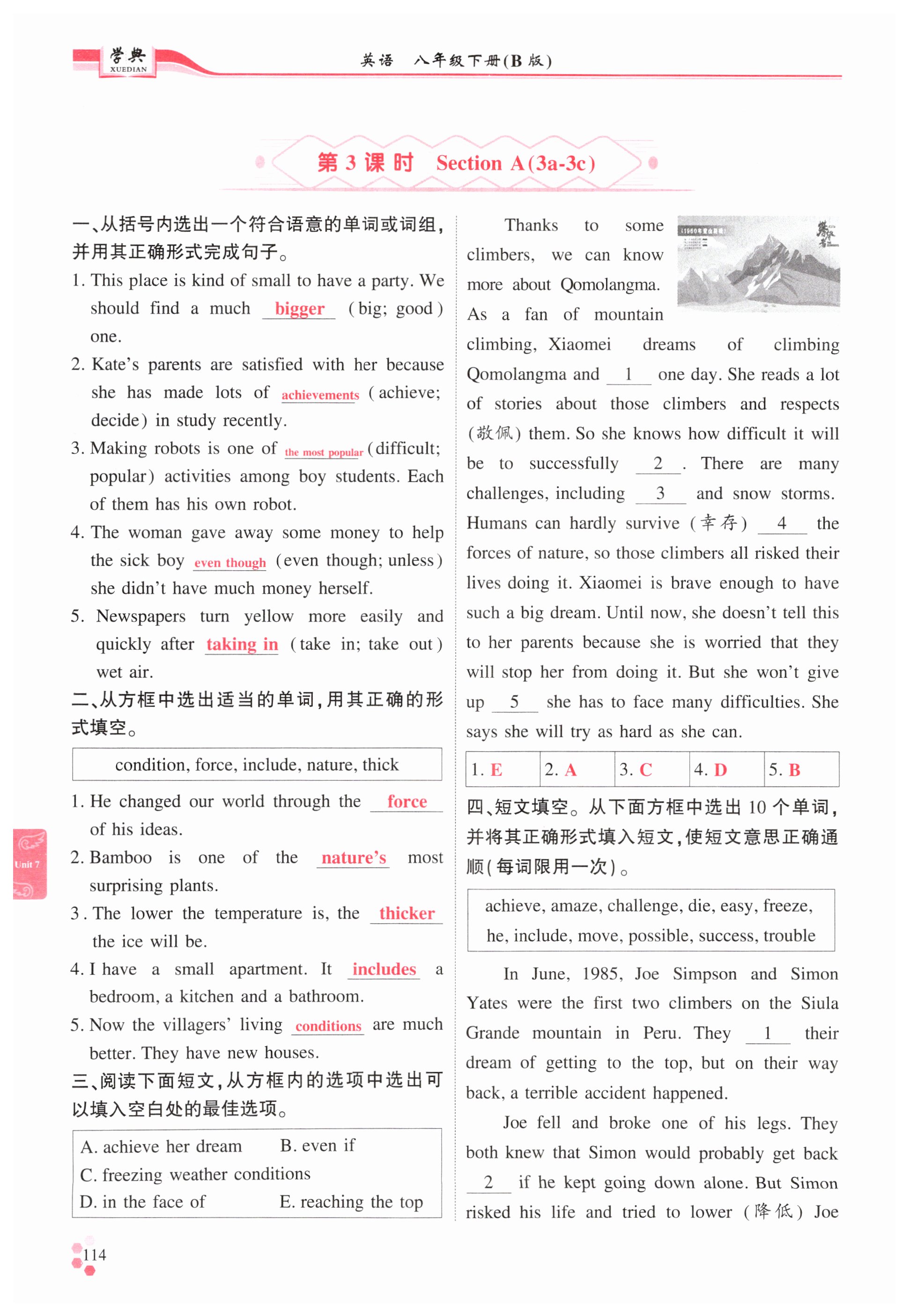 注:目前有些书本章节名称可能整理的还不是很完善,但都是按照顺序排列的,请同学们按照顺序仔细查找。练习册 2025年学典四川八年级英语下册人教版B版 答案主要是用来给同学们做完题方便对答案用的,请勿直接抄袭。