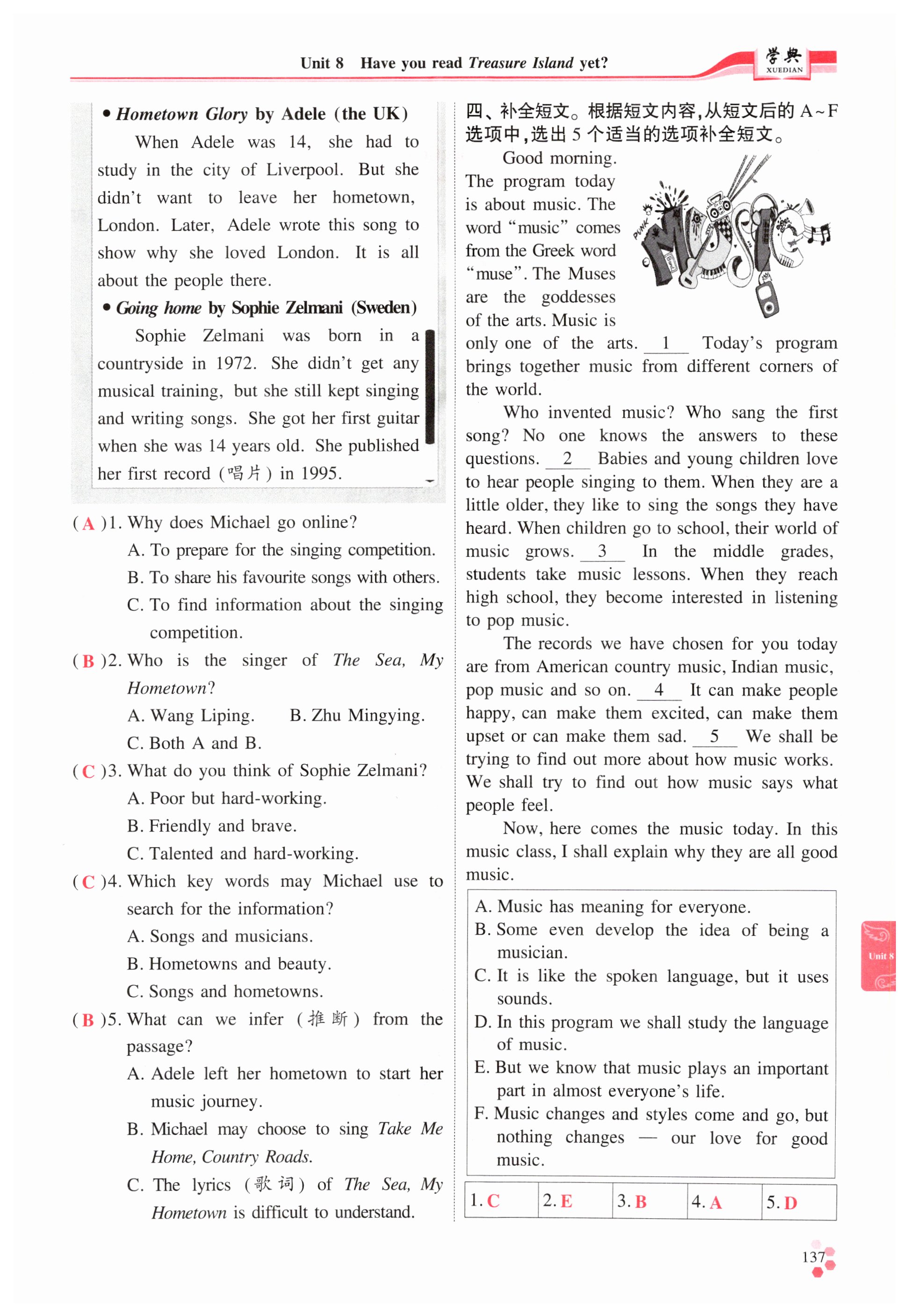 注:目前有些书本章节名称可能整理的还不是很完善,但都是按照顺序排列的,请同学们按照顺序仔细查找。练习册 2025年学典四川八年级英语下册人教版B版 答案主要是用来给同学们做完题方便对答案用的,请勿直接抄袭。