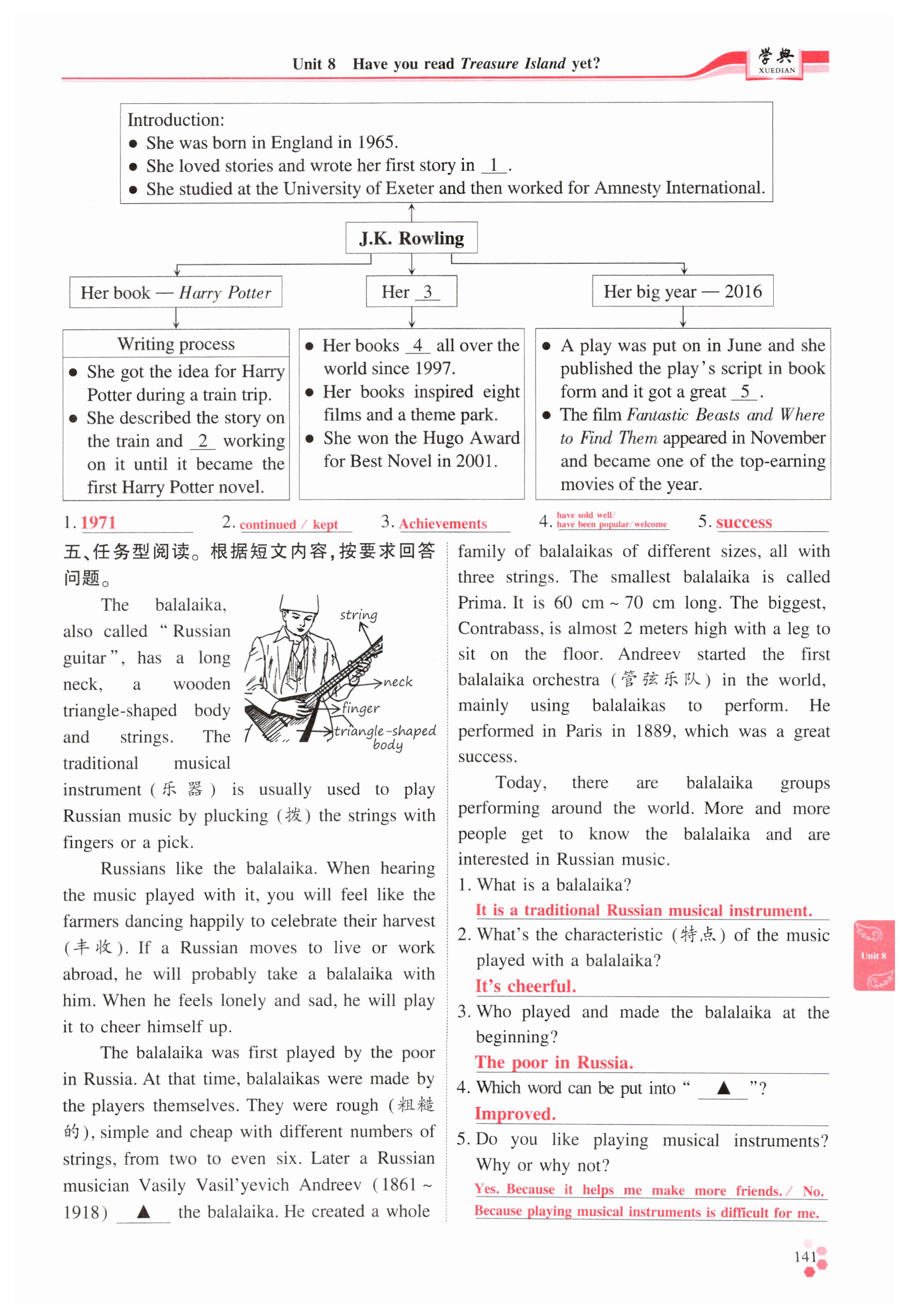 注:目前有些书本章节名称可能整理的还不是很完善,但都是按照顺序排列的,请同学们按照顺序仔细查找。练习册 2025年学典四川八年级英语下册人教版B版 答案主要是用来给同学们做完题方便对答案用的,请勿直接抄袭。