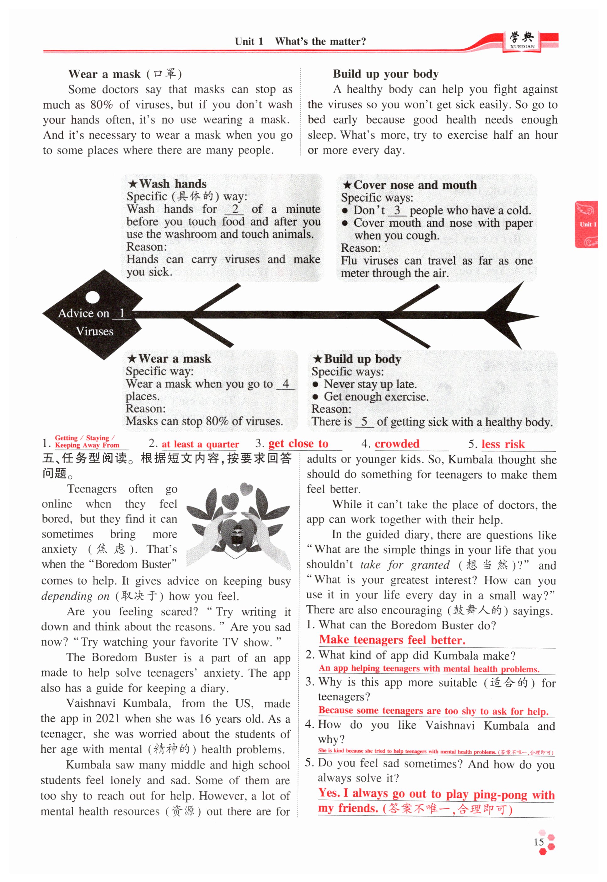 注:目前有些书本章节名称可能整理的还不是很完善,但都是按照顺序排列的,请同学们按照顺序仔细查找。练习册 2025年学典四川八年级英语下册人教版B版 答案主要是用来给同学们做完题方便对答案用的,请勿直接抄袭。