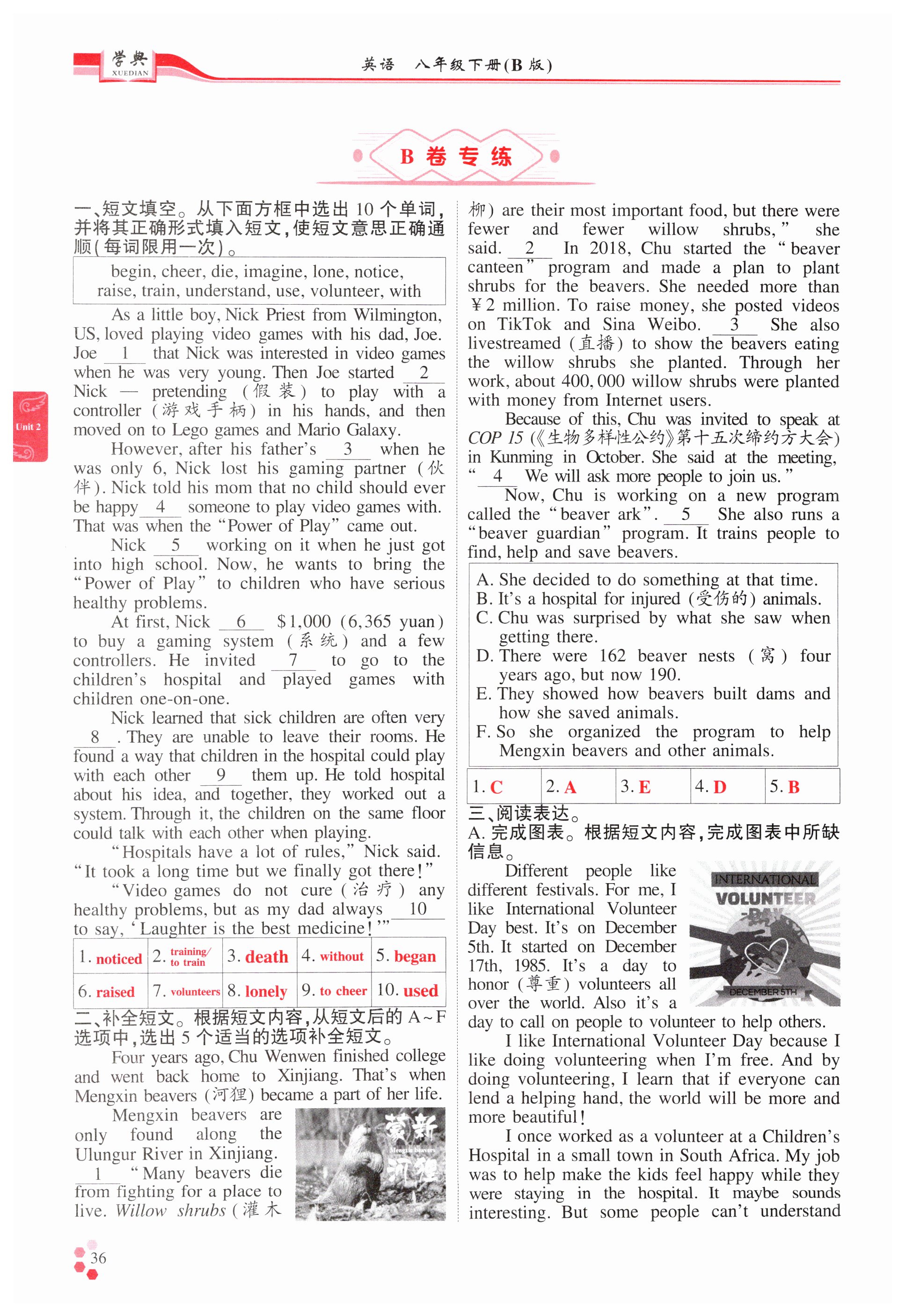 注:目前有些书本章节名称可能整理的还不是很完善,但都是按照顺序排列的,请同学们按照顺序仔细查找。练习册 2025年学典四川八年级英语下册人教版B版 答案主要是用来给同学们做完题方便对答案用的,请勿直接抄袭。