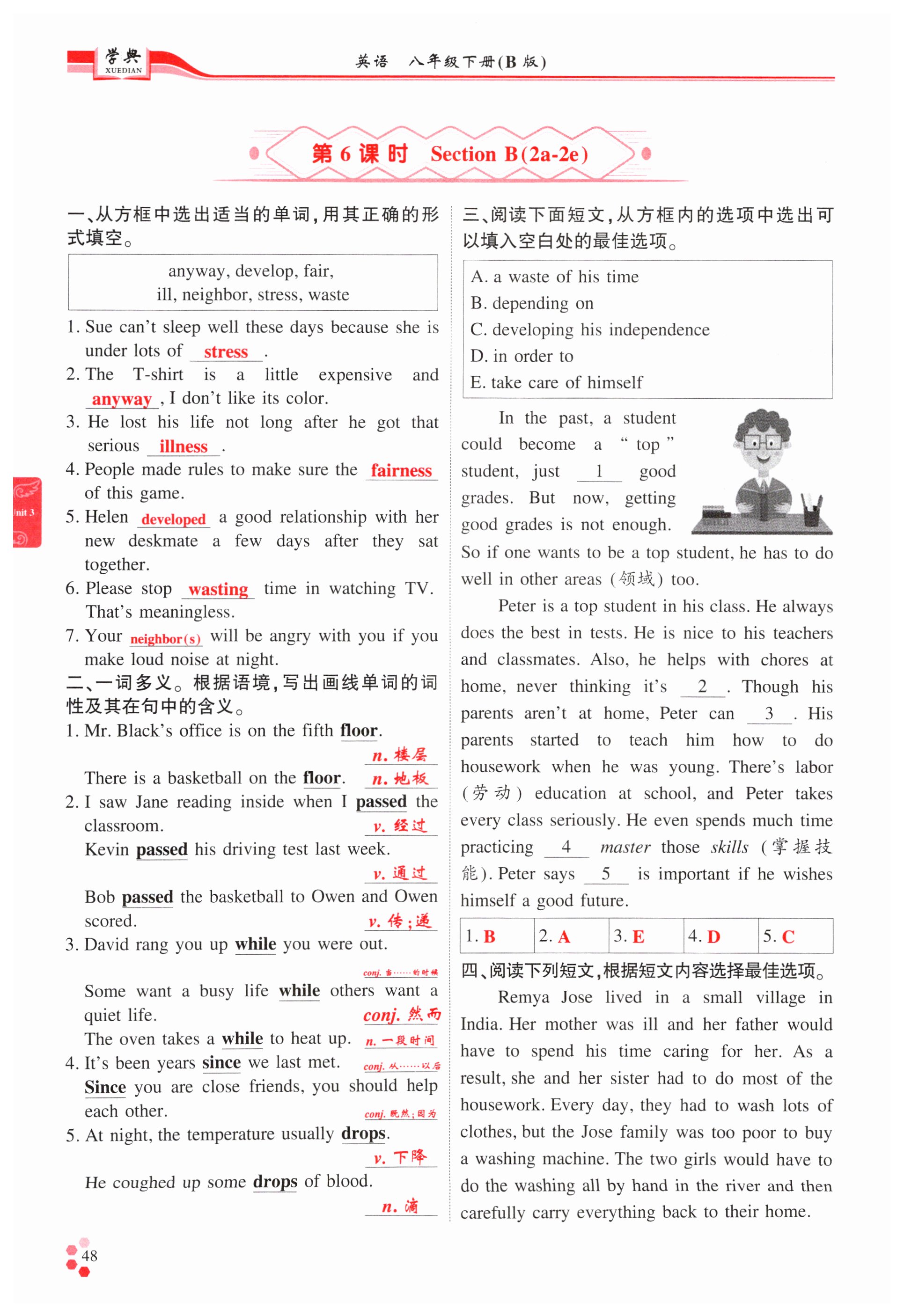 注:目前有些书本章节名称可能整理的还不是很完善,但都是按照顺序排列的,请同学们按照顺序仔细查找。练习册 2025年学典四川八年级英语下册人教版B版 答案主要是用来给同学们做完题方便对答案用的,请勿直接抄袭。
