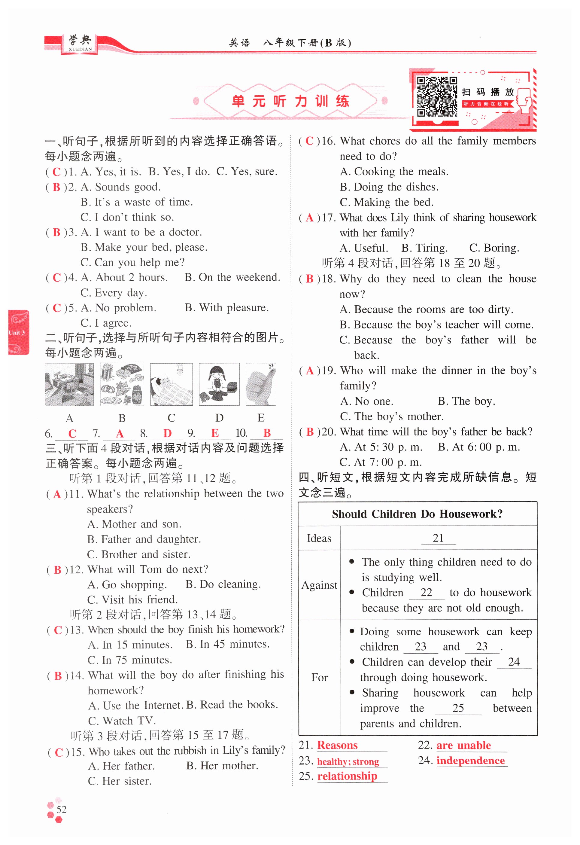 注:目前有些书本章节名称可能整理的还不是很完善,但都是按照顺序排列的,请同学们按照顺序仔细查找。练习册 2025年学典四川八年级英语下册人教版B版 答案主要是用来给同学们做完题方便对答案用的,请勿直接抄袭。