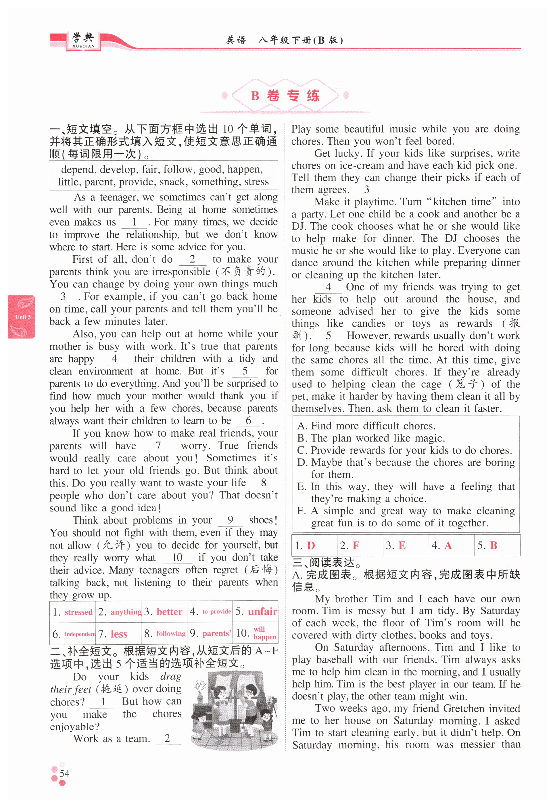 注:目前有些书本章节名称可能整理的还不是很完善,但都是按照顺序排列的,请同学们按照顺序仔细查找。练习册 2025年学典四川八年级英语下册人教版B版 答案主要是用来给同学们做完题方便对答案用的,请勿直接抄袭。