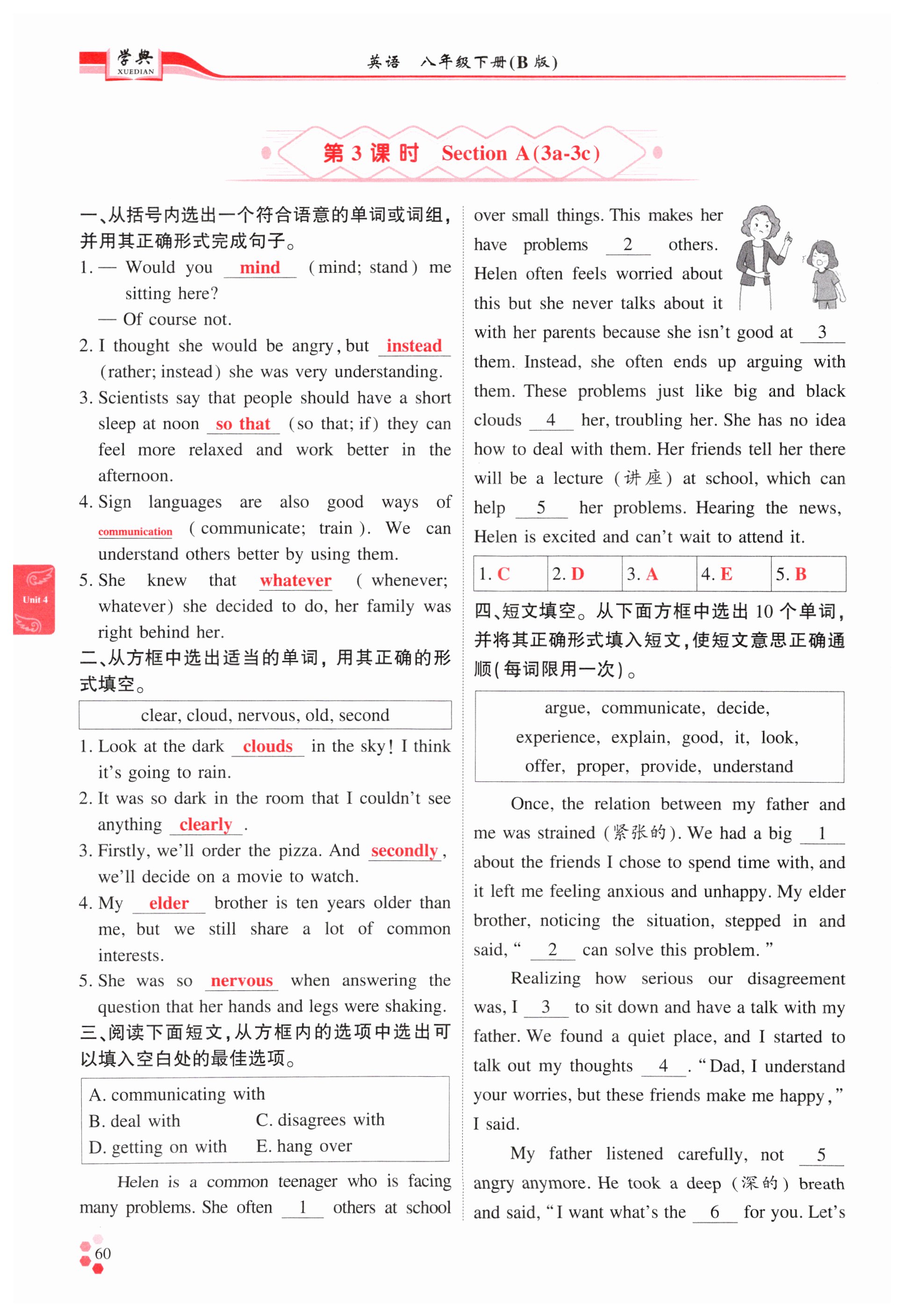 注:目前有些书本章节名称可能整理的还不是很完善,但都是按照顺序排列的,请同学们按照顺序仔细查找。练习册 2025年学典四川八年级英语下册人教版B版 答案主要是用来给同学们做完题方便对答案用的,请勿直接抄袭。