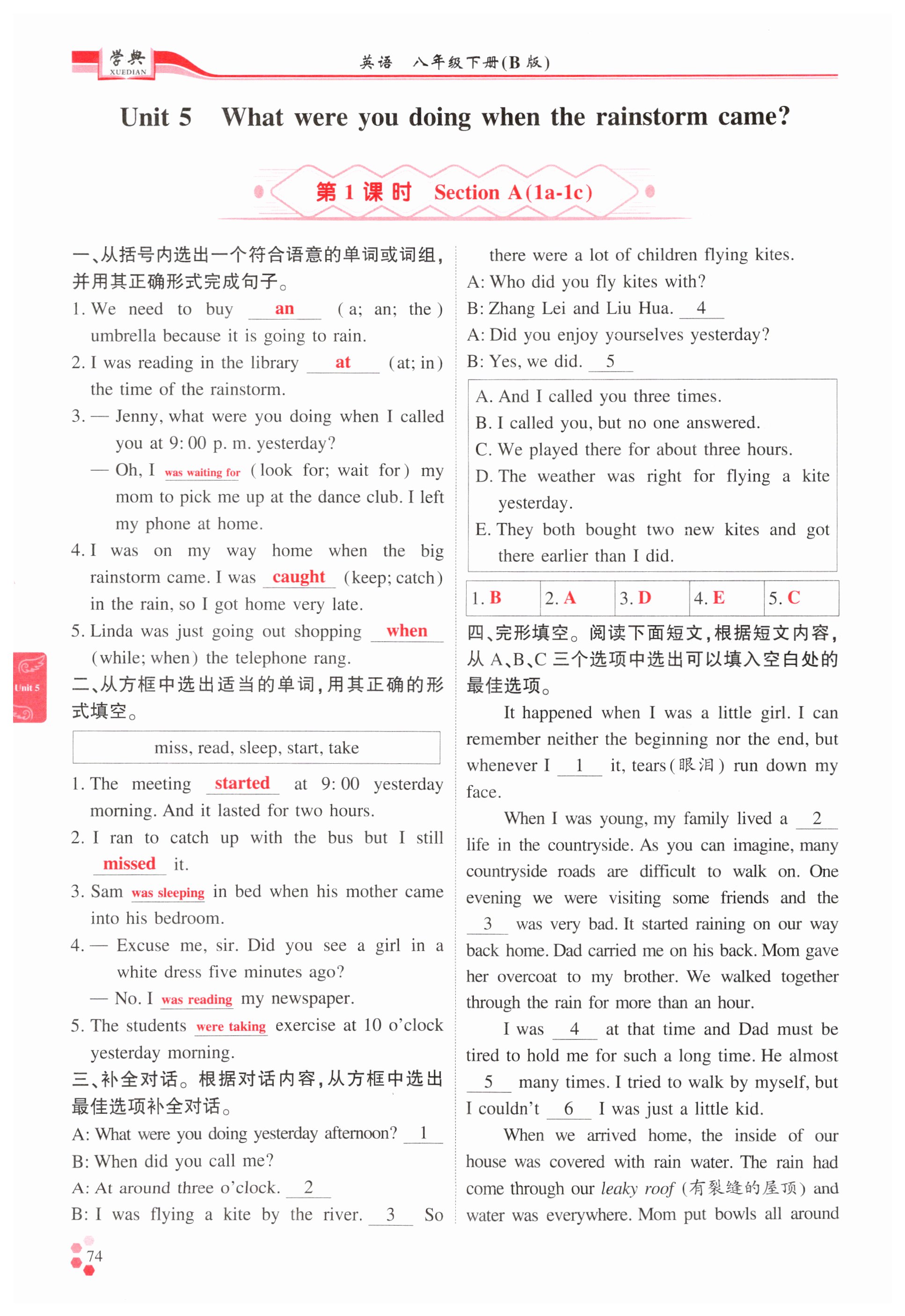 注:目前有些书本章节名称可能整理的还不是很完善,但都是按照顺序排列的,请同学们按照顺序仔细查找。练习册 2025年学典四川八年级英语下册人教版B版 答案主要是用来给同学们做完题方便对答案用的,请勿直接抄袭。
