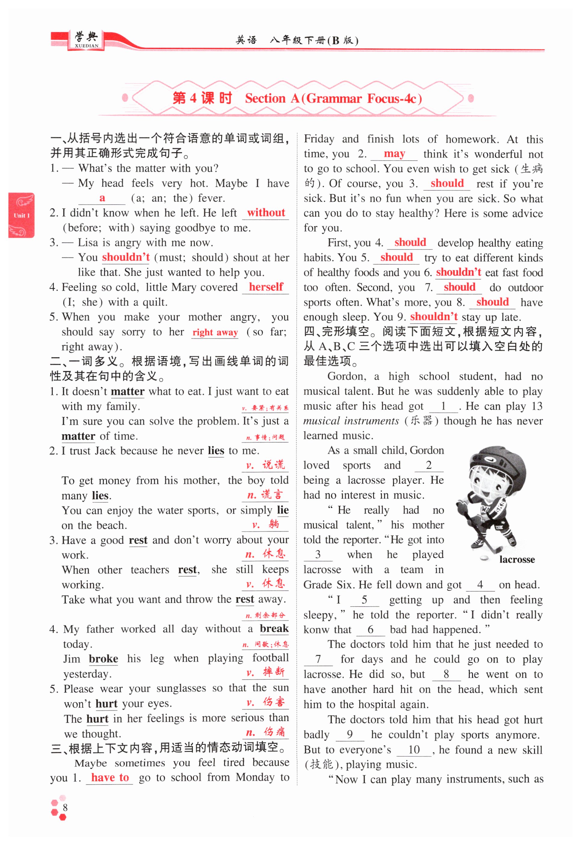 注:目前有些书本章节名称可能整理的还不是很完善,但都是按照顺序排列的,请同学们按照顺序仔细查找。练习册 2025年学典四川八年级英语下册人教版B版 答案主要是用来给同学们做完题方便对答案用的,请勿直接抄袭。
