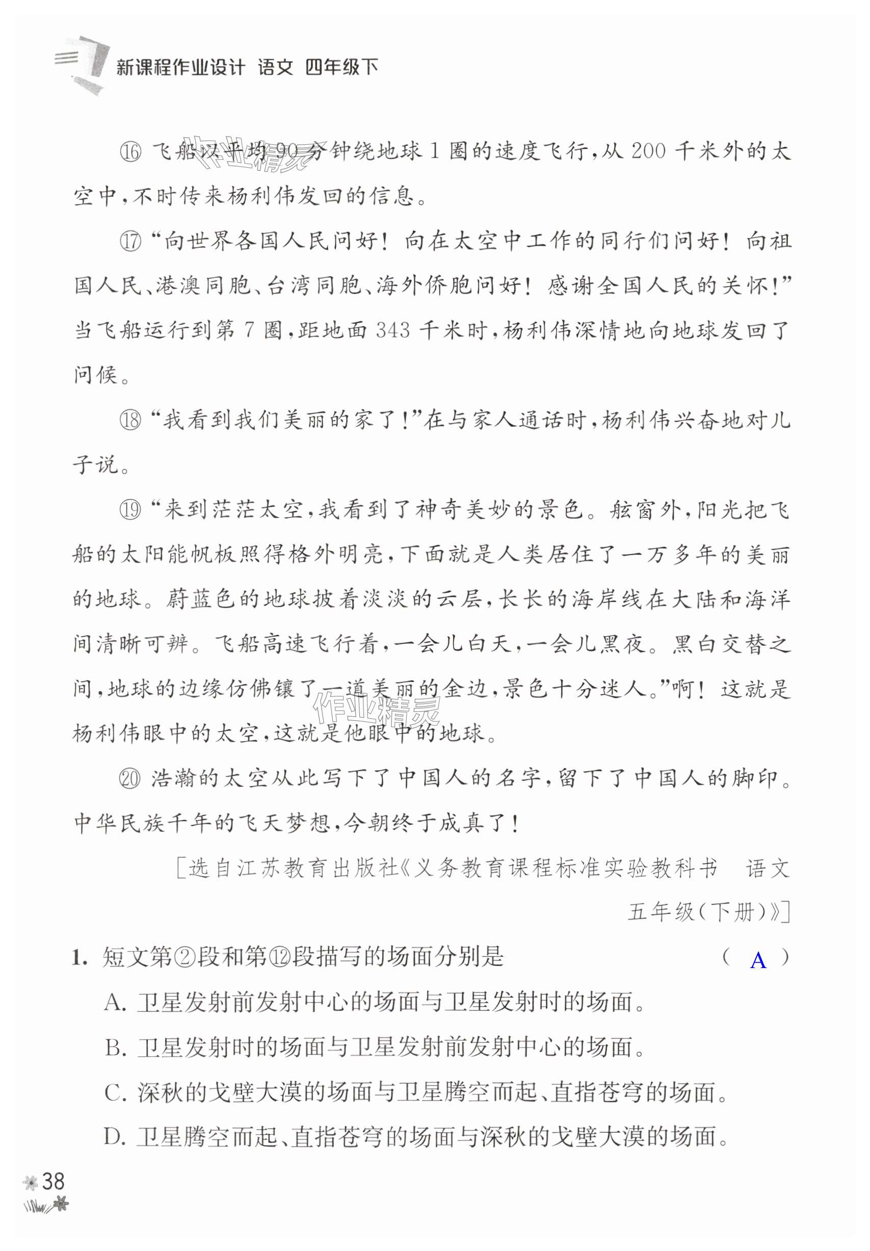 注:目前有些书本章节名称可能整理的还不是很完善,但都是按照顺序排列的,请同学们按照顺序仔细查找。练习册 2025年新课程作业设计四年级语文下册人教版 答案主要是用来给同学们做完题方便对答案用的,请勿直接抄袭。