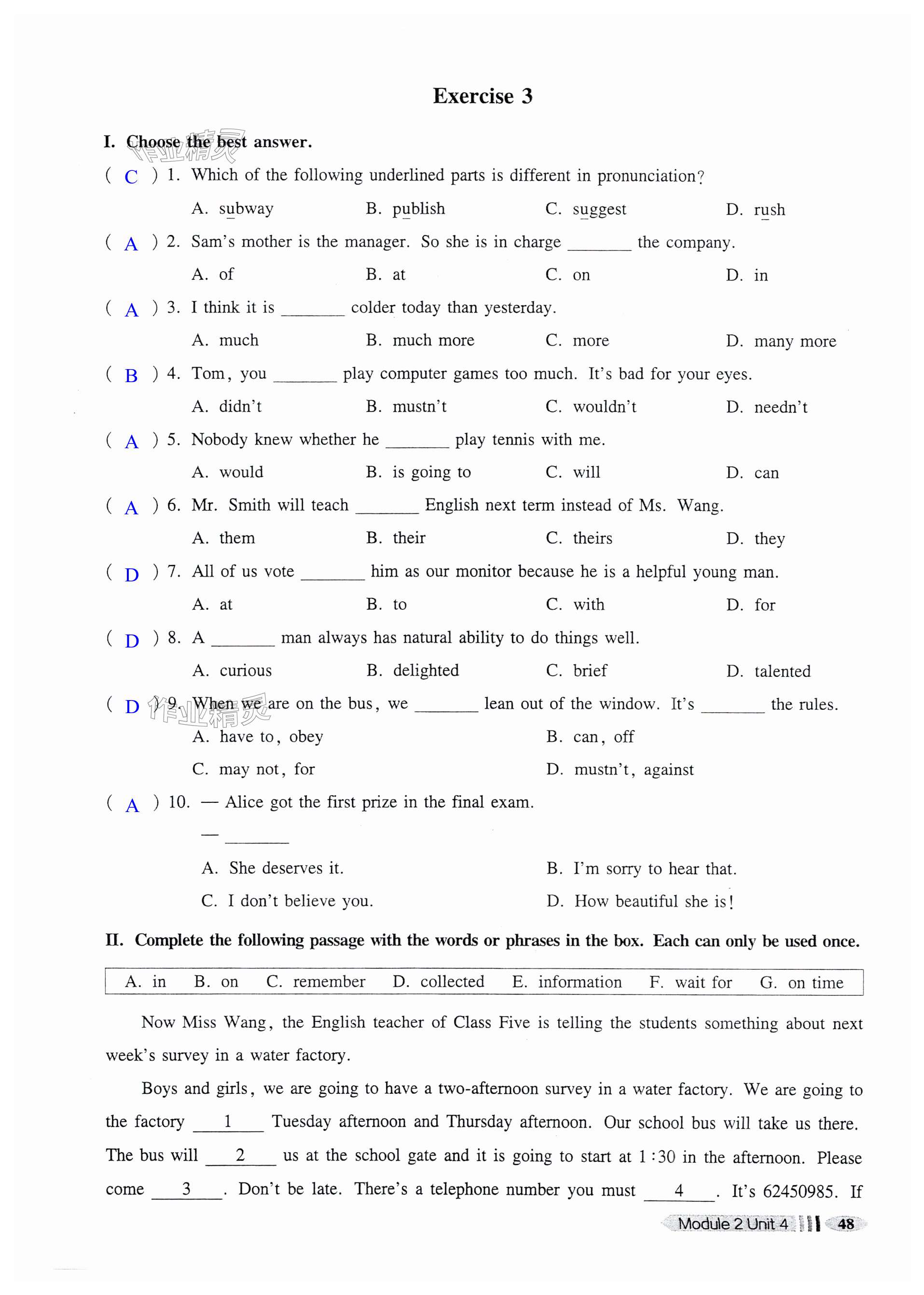 注:目前有些书本章节名称可能整理的还不是很完善,但都是按照顺序排列的,请同学们按照顺序仔细查找。练习册 2025年中学生英语同步精练八年级下册沪教版54制 答案主要是用来给同学们做完题方便对答案用的,请勿直接抄袭。