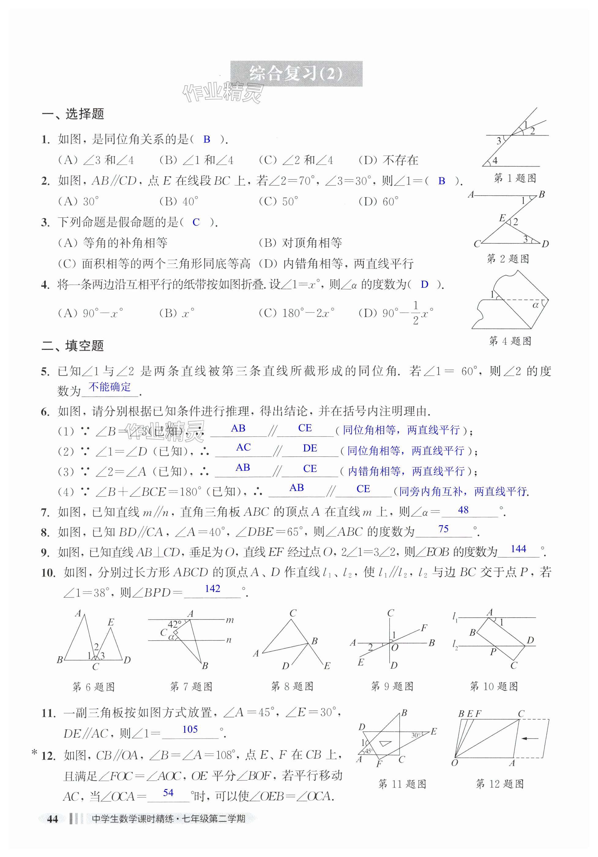 注:目前有些书本章节名称可能整理的还不是很完善,但都是按照顺序排列的,请同学们按照顺序仔细查找。练习册 2025年中学生数学课时精练七年级下册沪教版五四制 答案主要是用来给同学们做完题方便对答案用的,请勿直接抄袭。