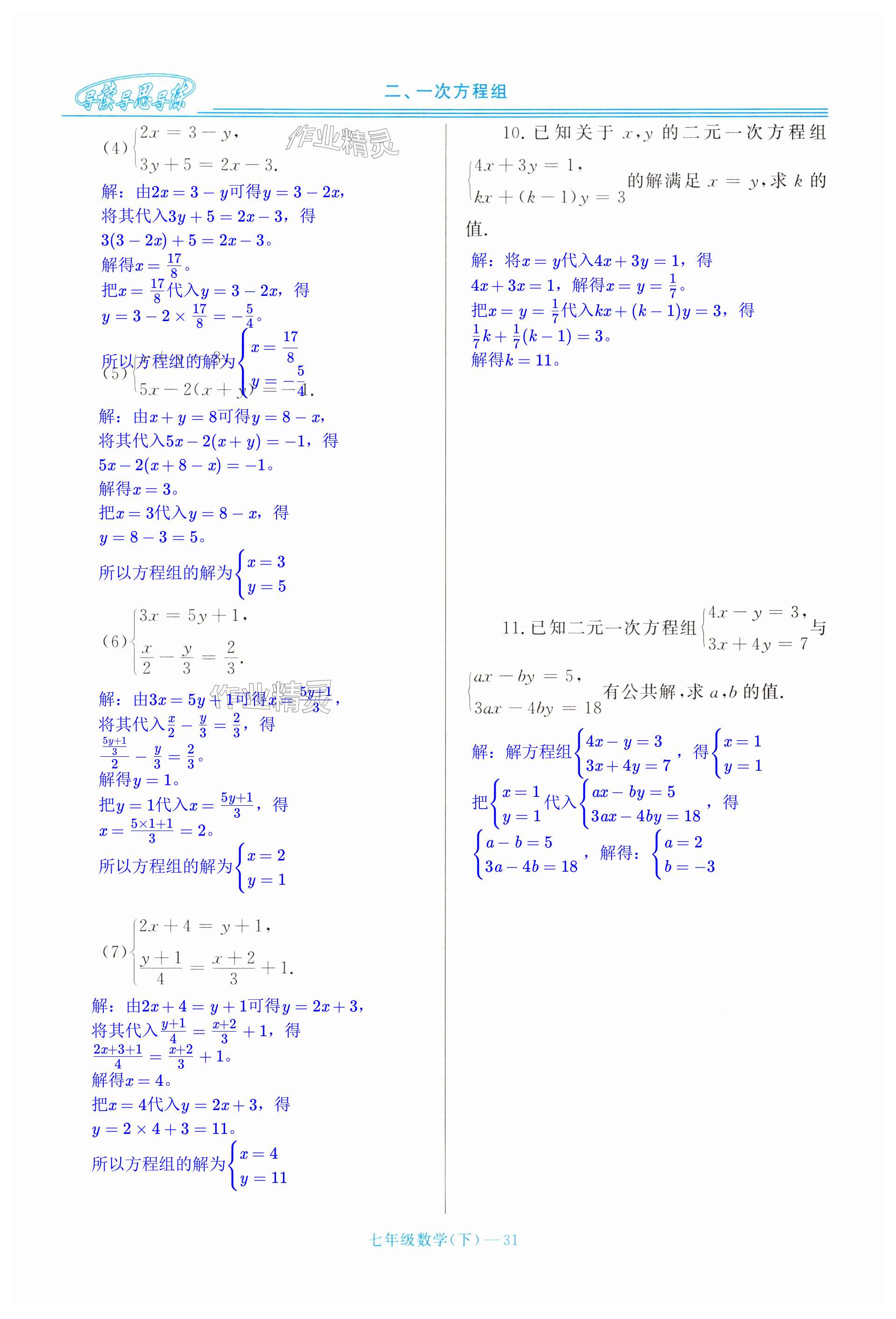 注:目前有些书本章节名称可能整理的还不是很完善,但都是按照顺序排列的,请同学们按照顺序仔细查找。练习册 2025年新课程学习指导七年级数学下册华师大版 答案主要是用来给同学们做完题方便对答案用的,请勿直接抄袭。