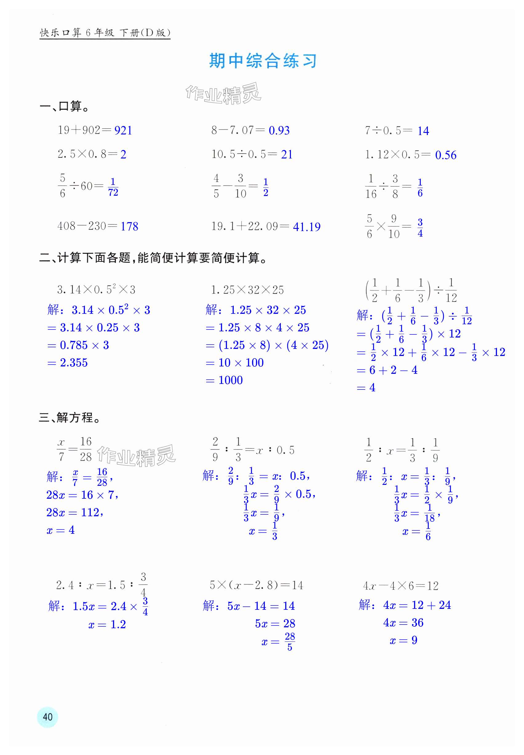 注:目前有些书本章节名称可能整理的还不是很完善,但都是按照顺序排列的,请同学们按照顺序仔细查找。练习册 2025年快乐口算六年级下册北师大版D版 答案主要是用来给同学们做完题方便对答案用的,请勿直接抄袭。