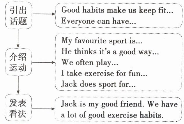 My favourite sport is running along the park five times a week②. I think it's good exercise for me. However, Jack thinks it's a good way to relax by doing sit - ups on weekdays. Also, we often② play tennis together at weekends, and sometimes② we play doubles. We enjoy these sports for different reasons. I take exercise for fun and pleasure. However③, Jack does sport for health. He is stronger than me.