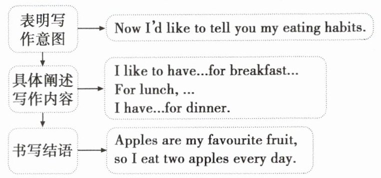 I like to have two eggs,some bread,a glass of milk for breakfast.I think breakfast is the most important meal of the day.Milk is good forr my health,so I drink milk every morning.For lunch,I have chicken,rice,and vegetables.I have vegetables or fruit salad for dinner.Apples are my favourite fruit,so I eat two applles every day.③