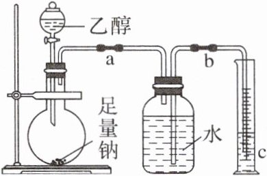 还是$H-\underset{\underset{H}{\vert }}{\overset{\overset{H}{\vert }}{C}}-\underset{\underset{H}{\vert }}{\overset{\overset{H}{\vert }}{C}}-O-H$,利用乙醇和钠的反应,设计如图装置进行实验探究: