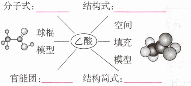 1. $C_{2}H_{4}O_{2}$的结构简式为$H-\overset{H}{\underset{H}{\begin{array}{l}\vert \\ C\\ \vert \end{array}}}-\overset{O}{\overset{// }{C}}-O-H$,官能团为$—COOH$,乙酸的结构简式为$CH_{3}COOH$。
