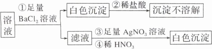D [能够与氯化钡反应生成不溶于稀盐酸的沉淀的离子有$SO_4^{2 - }$或$Ag^+$,由于步骤①中加入氯化钡溶液,引进了$Cl^-$,步骤③也无法确定原溶液中是否存在氯离子,所以无法确定原溶液中一定存在的离子。]