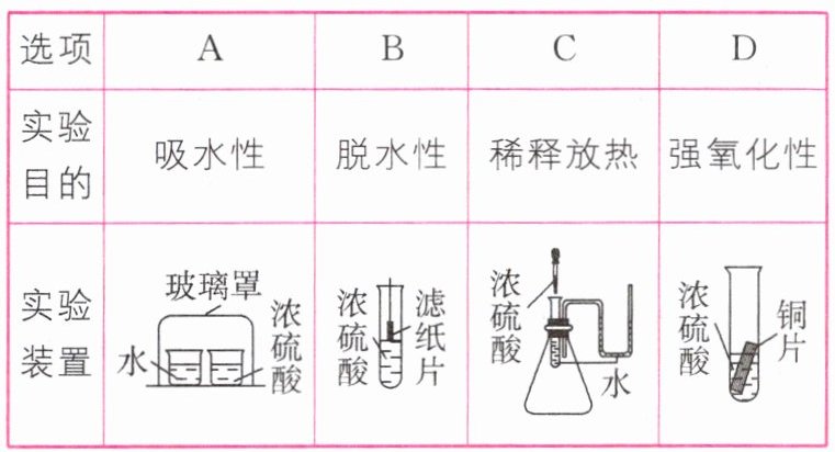 2.某同学设想用图示装置来验证浓硫酸的某些性质,其中不能达到实验目的的是( )