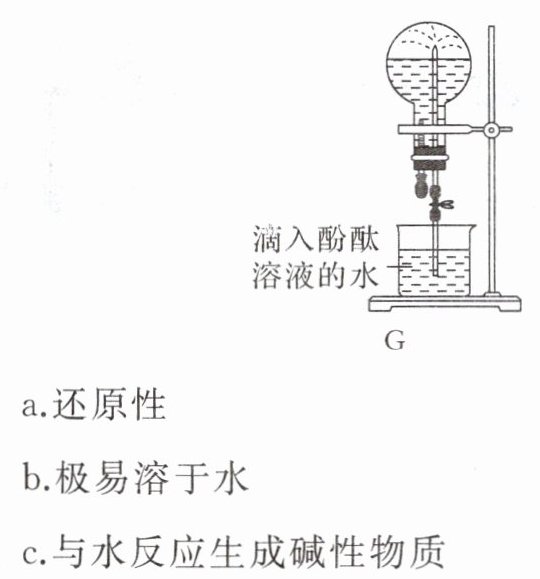 |(6)某同学用如图G所示装置进行氨的性质实验(烧杯中滴加了酚酞溶液),根据烧瓶内产生红色喷泉的现象,说明氨具有的性质|b、c|
