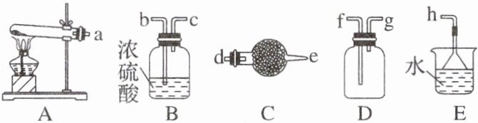解析:(1)制取干燥的氨,A为发生装置,然后用盛有碱石灰的干燥管干燥,连接d→e,再用向下排气法收集,连接g→f;实验室制取氨是用氯化铵和氢氧化钙加热反应,化学方程式为$2NH_{4}Cl+Ca(OH)_{2}\xlongequal{\triangle}CaCl_{2}+2NH_{3}\uparrow+2H_{2}O$。