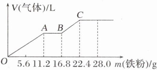 9.向200mL稀硫酸和稀硝酸的混合溶液中逐渐加入铁粉,产生气体的体积随铁粉质量的变化如图所示(已知硝酸只被还原为NO气体)。下列说法错误的是(D)