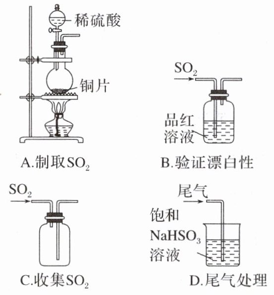 4.下列制取SO₂、验证其漂白性、收集并进行尾气处理的装置和原理能达到实验目的的是( )
