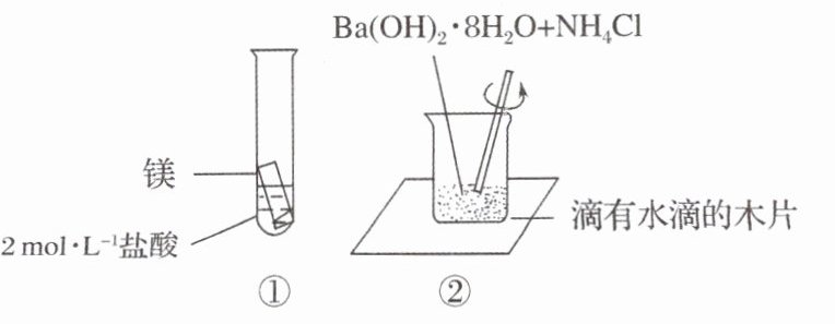 1.(1)吸收 放出 (2)①气泡 上升 Mg + 2H⁺ = Mg²⁺ + H₂↑ 放热 ②刺激性 发凉 黏结在一起 糊状 Ba(OH)₂·8H₂O + 2NH₄Cl = BaCl₂ + 2NH₃↑ + 10H₂O 吸热