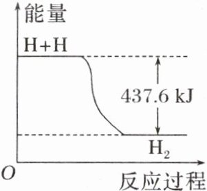 D [A项,H₂分子中含有共价键,故2H→H₂过程中形成共价键;B项,由题图可知,H原子变成H₂放出能量,则等质量的氢气分子的能量比氢原子的能量低;C项,由题图可知,2H→H₂过程中,形成1 mol H—H要放出437.6 kJ能量;D项,1 mol H₂离解成2 mol H原子,要断裂1 mol H—H,故要吸收437.6 kJ能量。]