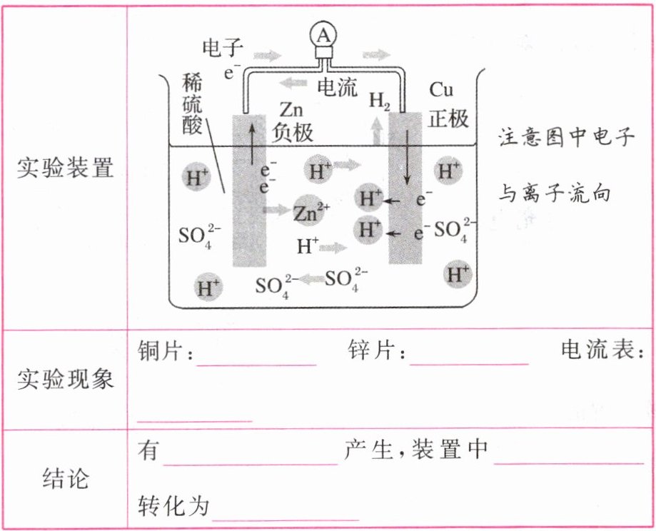 |实验现象|铜片:______ 锌片:______ 电流表:______|