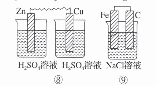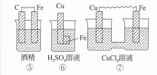 解析:构成原电池的条件缺一不可:①②缺少一个电极;③中电极相同;⑤中酒精为非电解质;⑧中不能形成闭合回路。
