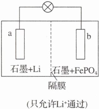 5. 某锂离子电池的工作原理如图所示(a极材料为金属锂和石墨的复合材料,b极材料为FePO₄和石墨的复合材料),其电池反应为Li + FePO₄ = LiFePO₄