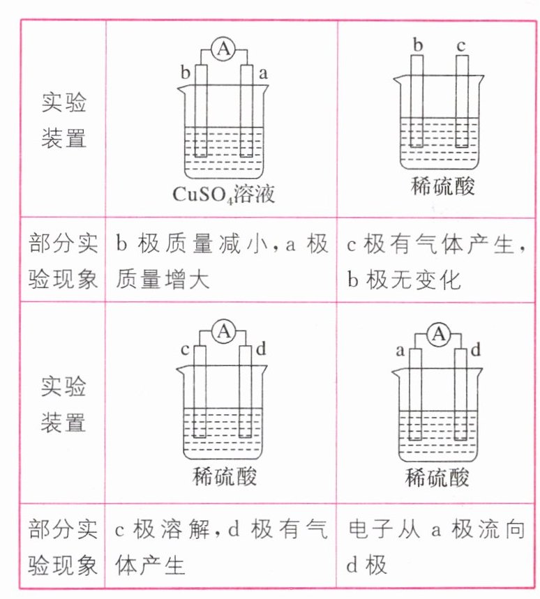 5. 有a、b、c、d四种金属电极,有关的实验装置及部分实验现象如下: