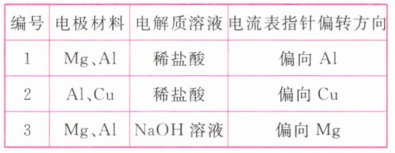 |编号|电极材料|电解质溶液|电流表指针偏转方向|