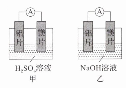 Ⅱ. 有甲、乙两位同学均想利用原电池反应检测金属的活动性强弱,两人均使用镁片与铝片作电极,但甲同学将电极放入6 mol·L⁻¹的H₂SO₄溶液中,乙同学将电极放入6 mol·L⁻¹的NaOH溶液中,如下图所示: