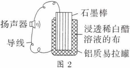 (2)某同学利用家中废旧材料制作可使扬声器发出声音的电池,装置如图2所示。