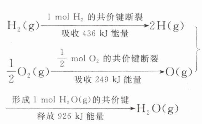 B. 1 mol $H_{2}(g)$和$\frac{1}{2}$mol $O_{2}(g)$的能量低于 1 mol $H_{2}O(g)$的能量