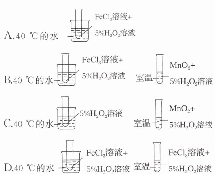 D [A.没有对比实验,A错误;B.催化剂不同,温度不同,无法比较,B错误;C.前者没有催化剂,后者有催化剂,且温度不同,无法比较,C错误;D.只有温度不同,其他条件都相同,该方案可行,D正确。]