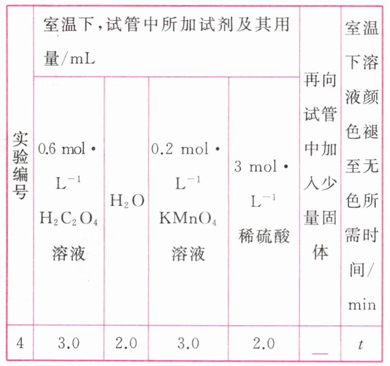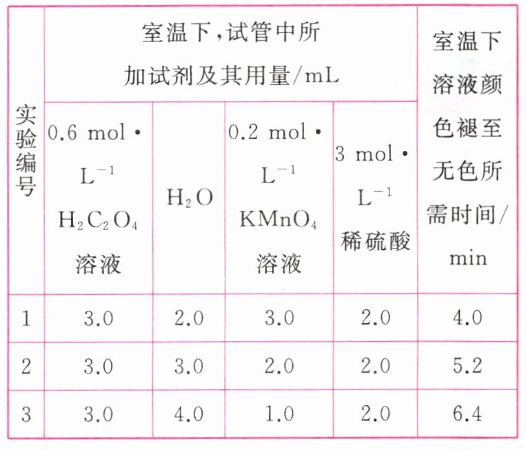 ③与实验1比较,溶液褪色所需时间更短[或所用时间(t)小于4.0 min及其他合理答案]