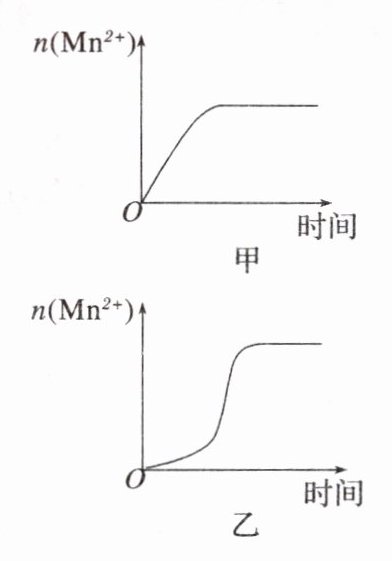 (3)该化学小组同学根据经验绘制了$n(\text{Mn}^{2 + })$随时间变化趋势的示意图,如图甲所示。但有同学查阅已有的实验资料发现,该实验过程中$n(\text{Mn}^{2 + })$随时间变化的趋势应如图乙所示。该小组同学根据图乙所示信息提出了新的假设,并继续进行实验探究。