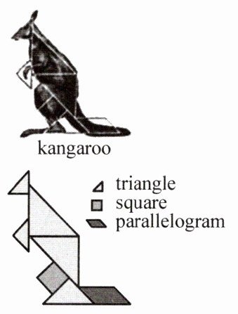 One day, Miss Hess started an animal science unit with a riddle (谜语). She said, “This animal lives in Australia and needs little water to survive.” Li quickly made up the shape of a kangaroo and showed it to Miss Hess. “Good job!” Miss Hess applauded him and said, “Could you give more information so the class could get it, Li?” “Sure!” said Li in a clear voice. “This animal carries its baby in a pouch (育儿袋).” “Kangaroo!” the class cried out. When Li's classmates saw what he arranged, they felt amazed and asked him to make more tangram animals.