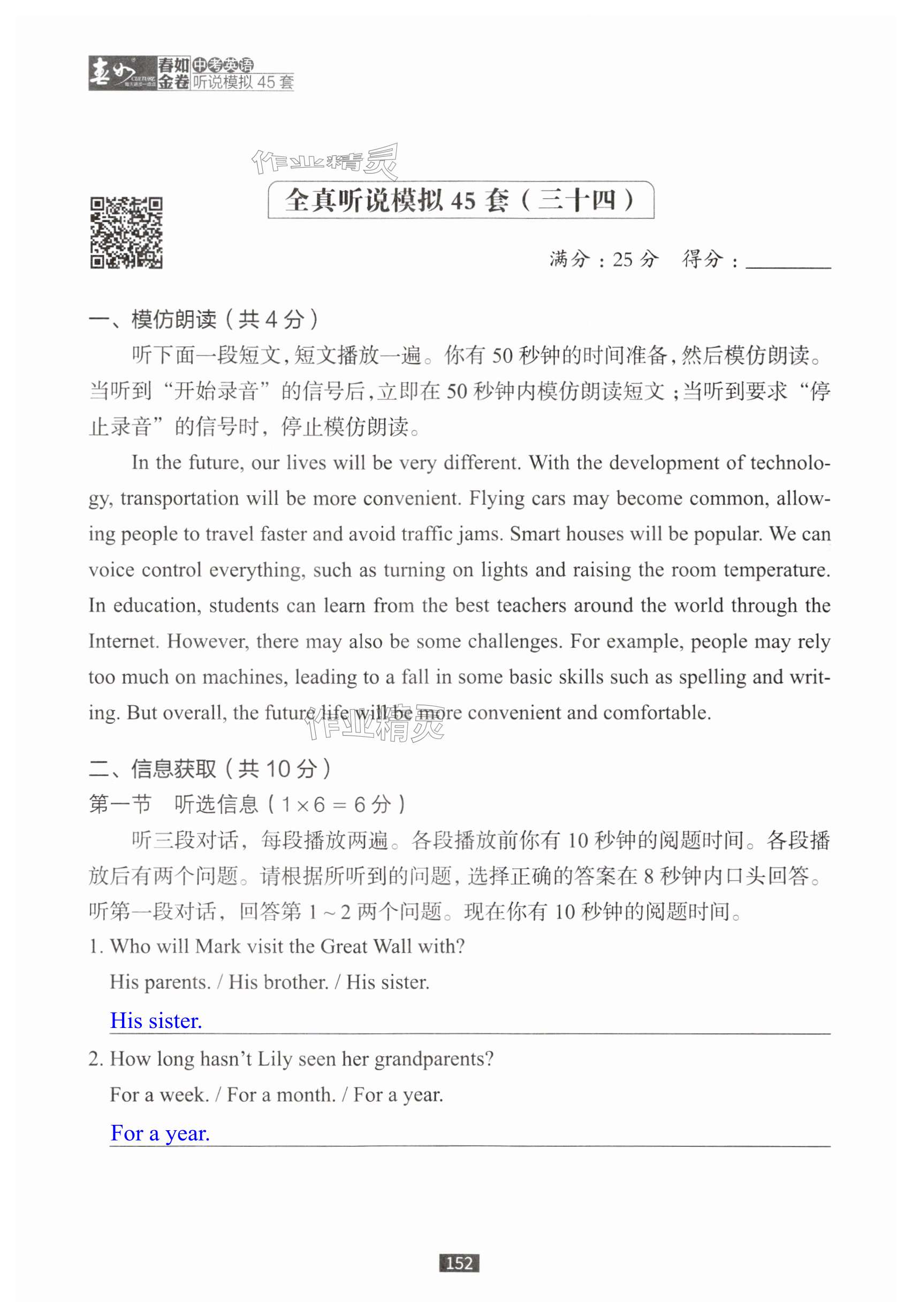 注:目前有些书本章节名称可能整理的还不是很完善,但都是按照顺序排列的,请同学们按照顺序仔细查找。练习册 2025年春如金卷中考英语听说模拟45套 答案主要是用来给同学们做完题方便对答案用的,请勿直接抄袭。