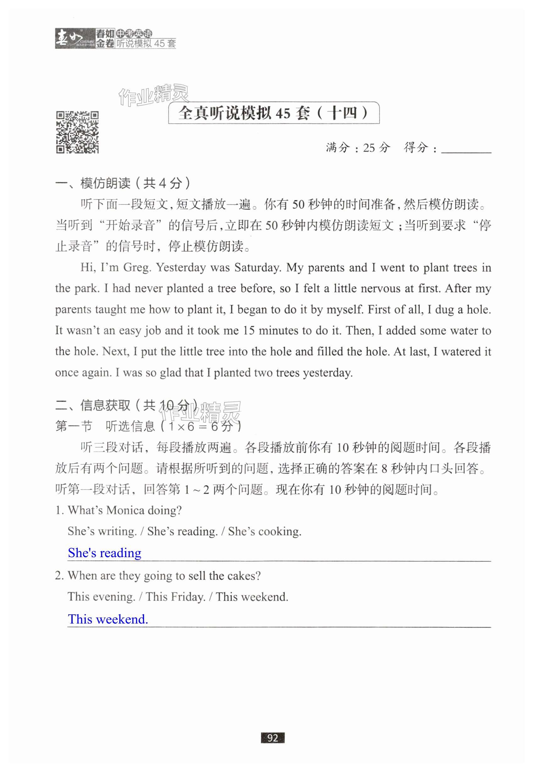 注:目前有些书本章节名称可能整理的还不是很完善,但都是按照顺序排列的,请同学们按照顺序仔细查找。练习册 2025年春如金卷中考英语听说模拟45套 答案主要是用来给同学们做完题方便对答案用的,请勿直接抄袭。