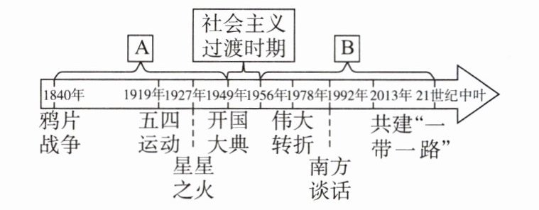 中国近现代史,是一部中华民族怀揣强国之梦不懈追求的历史。观察下列年代尺,回答问题。