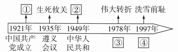 2. 某同学在学习中国共产党100多年的奋斗历程时,自制了历史年代尺,其中④处应该填写的是( )