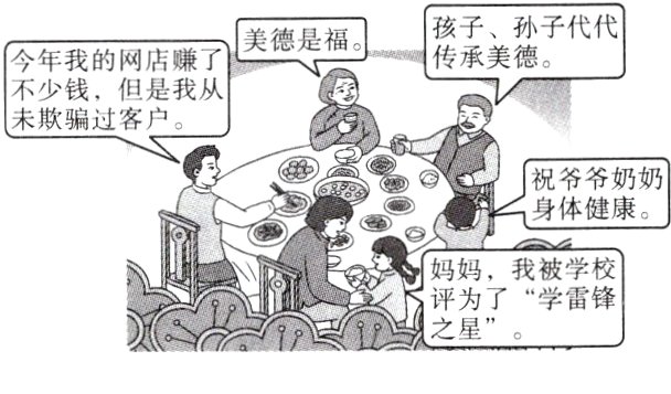 (1)漫画《除夕话我家》中一家人的对话,体现了哪些中华传统美德?