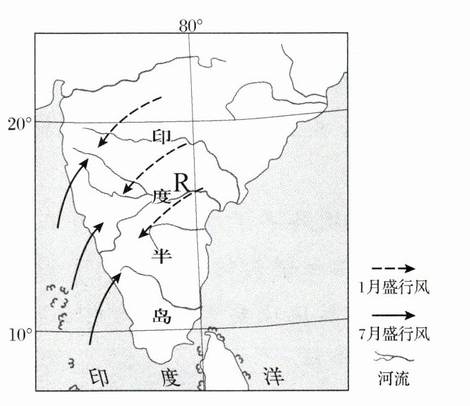 读印度半岛河流及盛行风向示意图,完成3~4题。