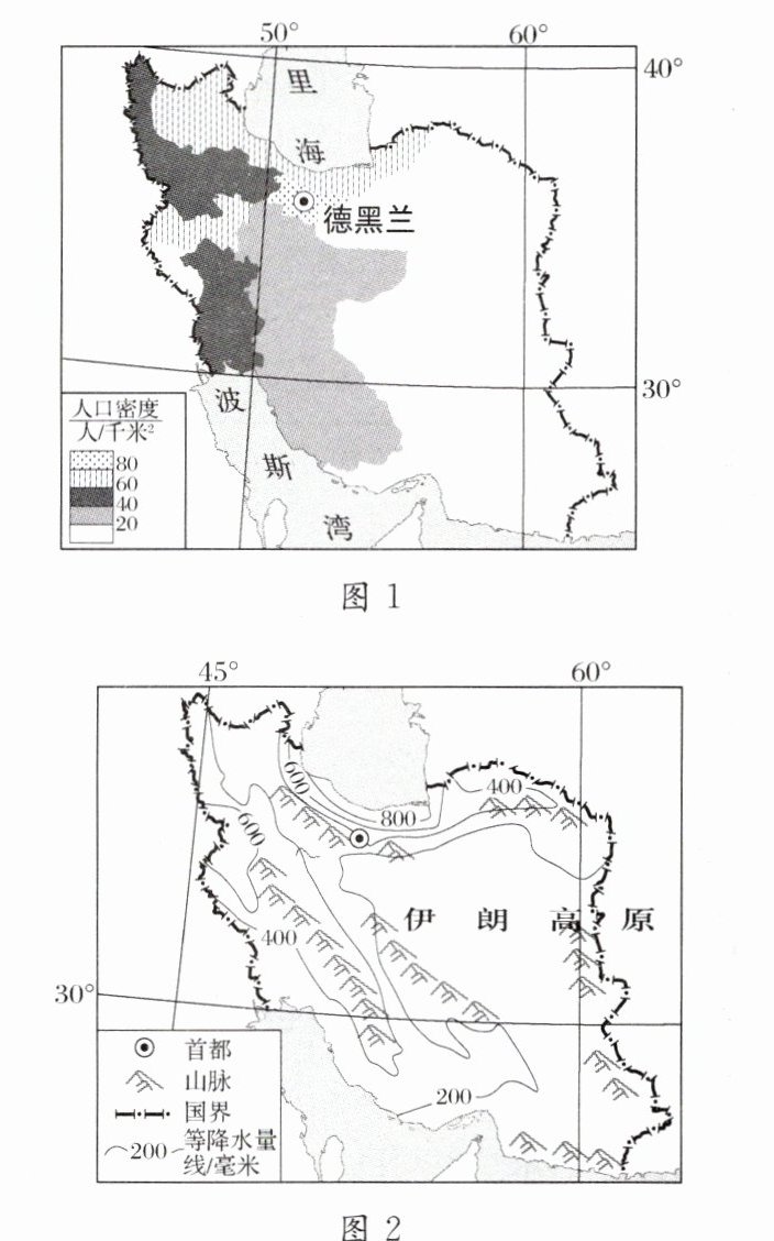 B. 人口集中分布在伊朗高原